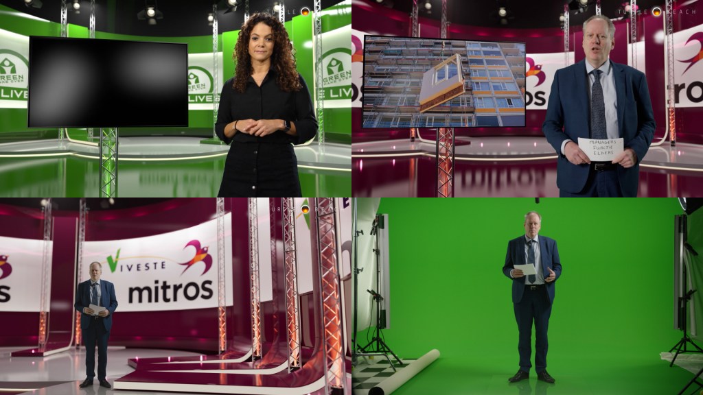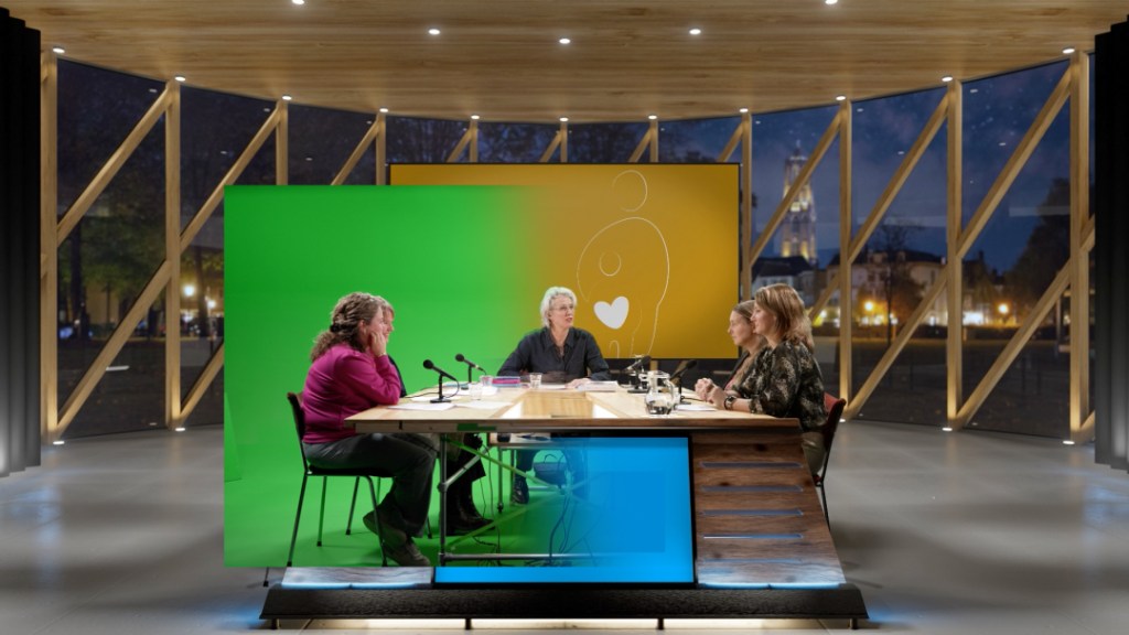 Vanuit Green Screen Studio Utrecht worden regelmatig livestreams en webinars via internet uitgezonden. Er zijn verschillende presentatie-setups mogelijk. Bv. een tafel met 5 personen, een desk met 2-3 personen of een custom setup met eigen wensen. Mensen kunnen inbellen en met een videoverbinding in de livestream verschijnen. Door in een green screen te filmen is het mogelijk met behulp van live keying de uitzending in iedere gewenste achtergrond of ruimte te plaatsen.